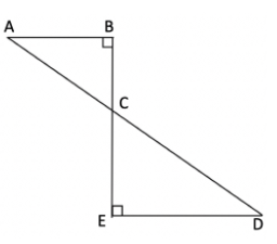 The two triangles ABC and CED are similar (they share the vertical angle at C and each has a right angle). This means their side lengths are proportional. AB to AC maps to ED to CD in the similar triangle.