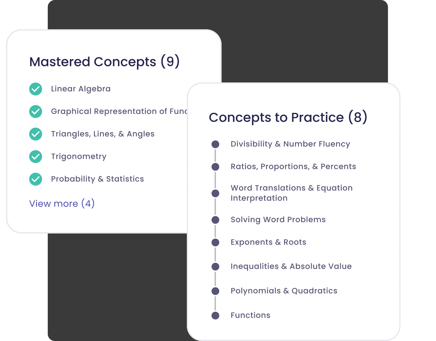 Subjects such as Algebra, Geometry, Pre-Calculus, Calculus, Statistics, Trigonometry, ACT, SAT, GED, and more.